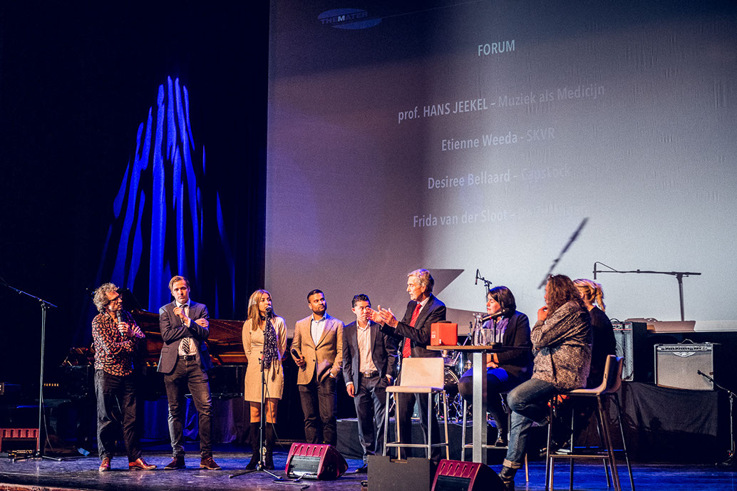 Na de pauze was er zoals altijd het Themater-debatprogramma met een forum, waarin natuurlijk ook de sprekers van Muziek als Medicijn plaatsnamen. Een unieke gelegenheid om vragen te stellen aan bevlogen mensen die op een bijzondere manier met mens en muziek bezig zijn.