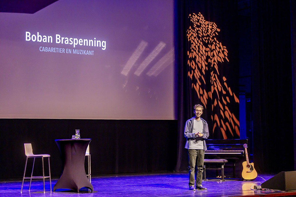 De act werd dit keer ingevuld door cabaratier Boban Braspenning die met een afwisselend scherpe en grappige tong feilloos aansloot op het thema. Met zijn dertig jaar had hij - zoals zovelen van zijn generatie - nog geen woning kunnen vinden.
