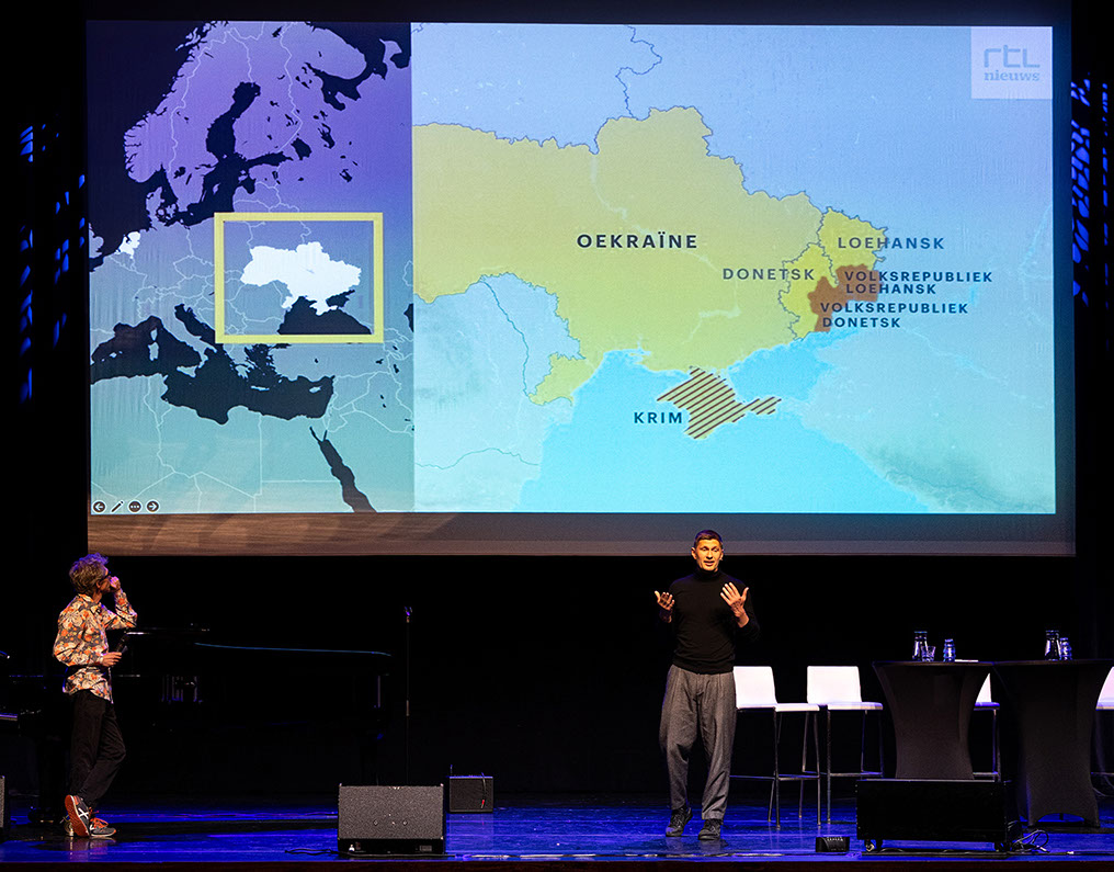 Maar de hoogtepunten van de avond waren toch de bijdragen van Evgeniy Levchenko, (professor) Paul van de Laar en de kristalhelder woorden van Dagmar Oudshoorn (directeur Amnesty International). Evgeniy boeide enorm door zijn verhaal hoe hij al vanaf zijn jonge kinderjaren systematisch geïndoctrineerd werd met een boodschap over de suprematie van de Sovjet Unie. Als hij (met een Russische vader en een Oekraïense moeder) vanaf vijfjarige leeftijd niet zou meegaan in de pro-Russische stroom zouden aanvankelijk vooral zijn ouders en later ook hijzelf daar last van krijgen. Aanvankelijk doorliep hij alle stadia als goede Sovjet-burger en kon hij als twaalfjarige al een Kalasjnikov uit elkaar halen en vliegensvlug weer monteren. Hij werd al jong gescout als voetbaltalent en al snel stond zijn jeugd in het teken van voetbal. Op zijn zeventiende kon hij als groot voetbaltalent naar het westen en is daar uiteindelijk ook voetballend gebleven. De laatste jaren zet hij zich op verschillende manieren (waaronder via de stichting Breath Care for Kids) in voor Oekraine.