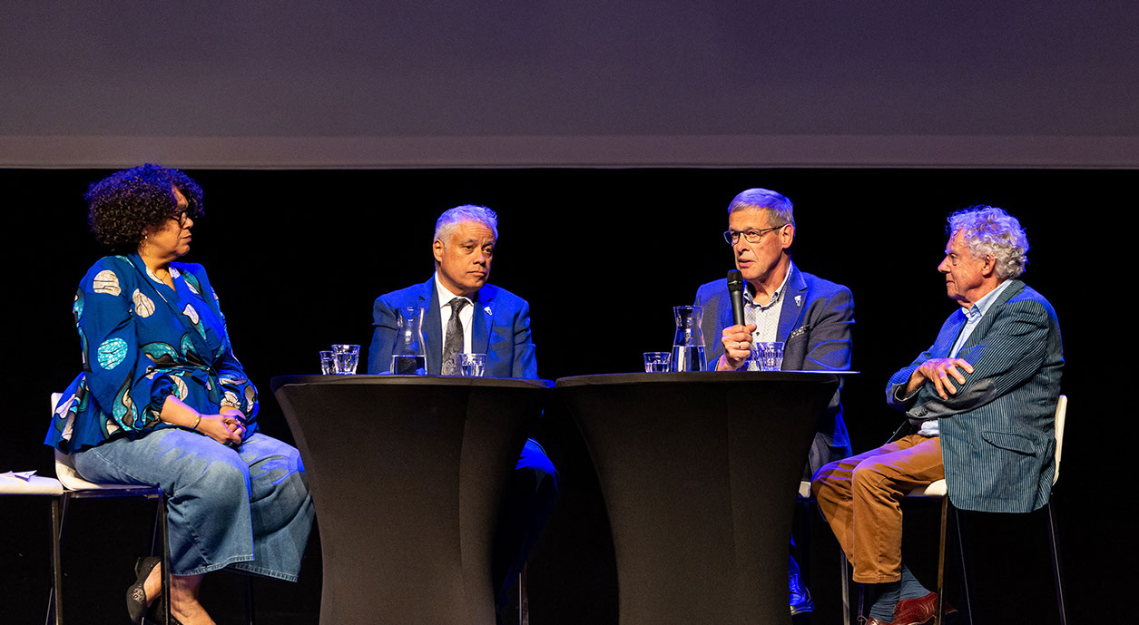 Frenk van der Linden - onze vaste presentator - was op dreef en strooide met oorlogsverhalen en herinneringen van zijn opa’s en van zijn vader. Onze burgemeester Joost Manusama legde zowel in de opening als in later het panel enkele belangrijke accenten; luisteren als belangrijke basis tegen polarisatie en ondersteuner van vrijheid.
