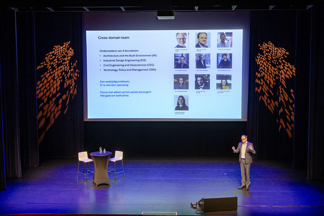Wij begonnen de avond met een uitstekende inleiding door dr. Ulf Hackauf – verbonden aan de universiteit Delft (Bouwkunde) in lid van het Vision Team Wonen. Dat team heeft een mooie visie ontwikkeld voor de toekomstige bouwopgave waarbij niet zozeer de kwantiteit (die 100.000 woningen die jaarlijks gebouwd zouden moeten worden maar nooit worden gehaald!) maar de kwaliteit en flexibiliteit centraal staan. Daarbij is ook ruim aandacht voor klimaatbestendig bouwen. Variatie in woonvormen en circulair en modulair bouwen zijn belangrijke uitgangspunten. Ook bij een thema als verdichting staat (bouw- en woon)kwaliteit voorop. In de nota Ruimte voor Wonen (TUDelft) is alles na te lezen Een visie op de toekomst van wonen in Nederland.