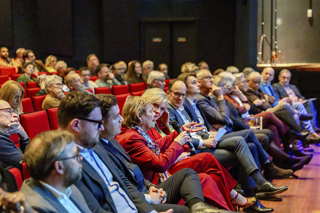 Na de pauze was het woord aan de politiek. Hier werd ook de rol van de dagvoorzitter Mylou Frencken - de partner van onze vaste mediator Frenk van der Linden die vanwege ziekte niet aanwezig kon zijn – prominenter. Op plezierige wijze hield ze de regie en kwamen de 10 lijsttrekkers zowel op film (korte pitch over bouwen en wonen in Capelle) als fysiek aan het woord. Er was de nodige overeenstemming tussen de tien, maar over de noodzaak van 10.000 woningen (is het niet te veel aldus enkelen) en het percentage sociale woningen daarbij, bestond minder eensgezindheid.