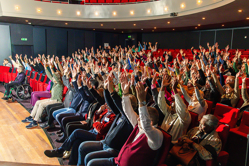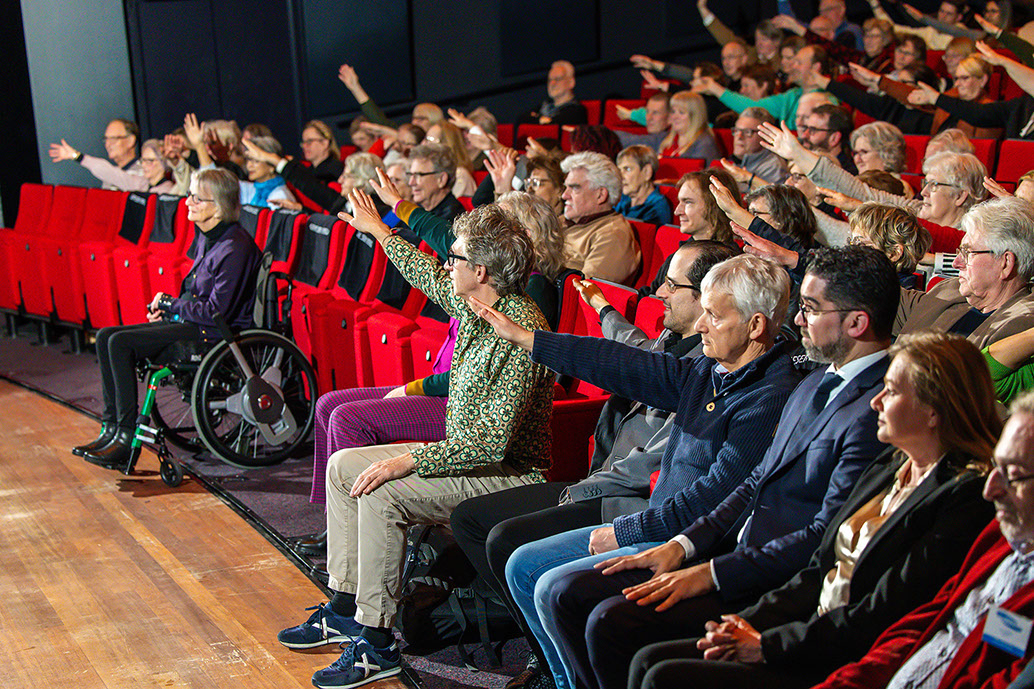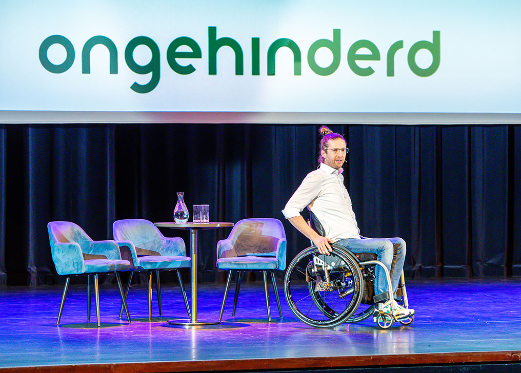 Alice Schippers, hoogleraar aan de Universiteit van Humanistiek (Utrecht) schetste vervolgens op uitstekende wijze het beeld van de manier waarop wij vaak aankijken tegen beperkingen en hoe ook Nederland traag was een resolutie van de Verenigde Naties over dit thema te ondertekenen. Gerard de Nooij sloot vervolgens naadloos aan op dit verhaal. Zijn eigen verhaal – dwarslaesie door een motorongeluk - maakte dat hij in een rolstoel op het podium verscheen en vervolgens twintig minuten de zaal aan zijn lippen had. Met een helder verhaal, goede anekdotes en veel humor. Daarmee werd de boodschap van zijn verhaal alleen maar sterker. Van zijn handicap heeft Gerard zijn beroep en missie gemaakt met zijn bedrijf Ongehinderd om gemeenten te ondersteunen bij het toegankelijk maken van gebouwen e.v.