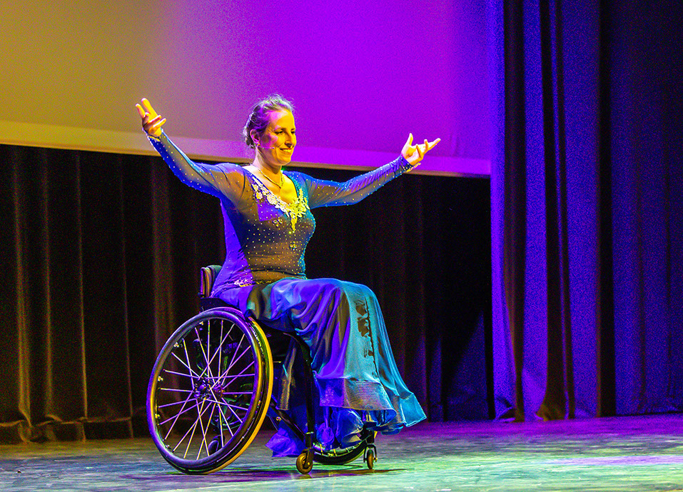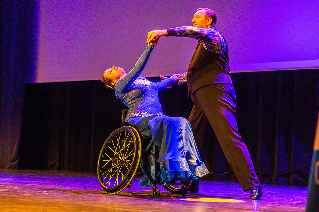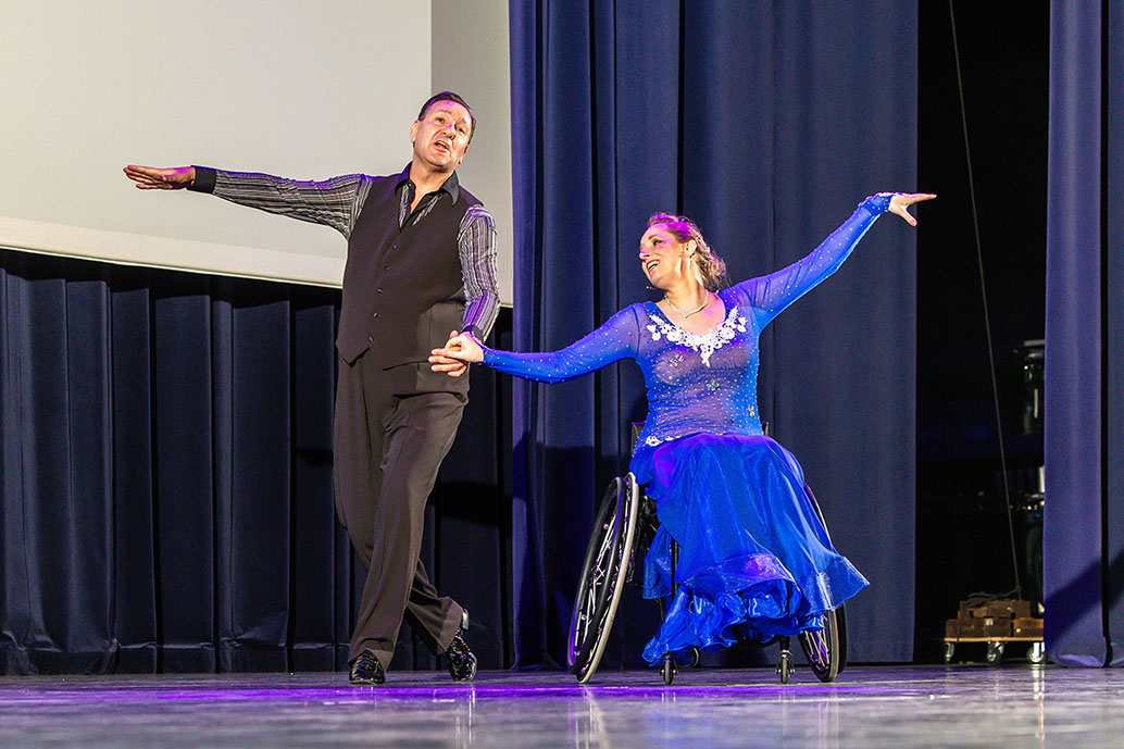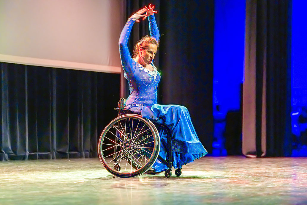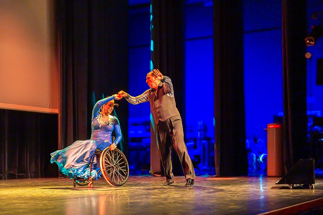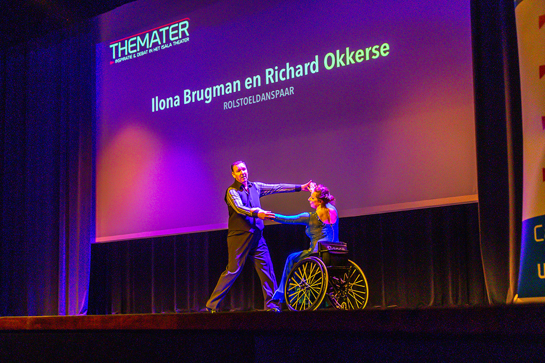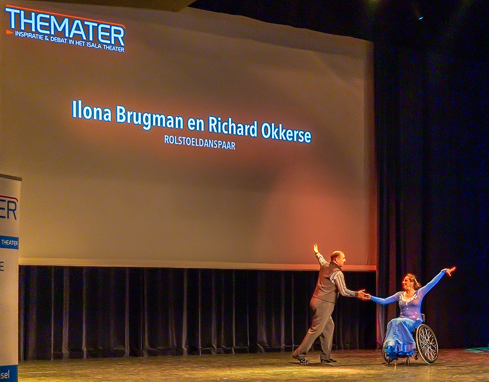 Na een korte pauze was het podium voor een beroemd rolstoelpaar Ilona Brugman (in rolstoel) en Richard Okkerse (wel mobiel). Licht, muziek en optreden maakte het geheel spetterend. Een daverend applaus was hun deel; zeker toen ook de hele zaal - armen zwaaiend - mee ging doen.