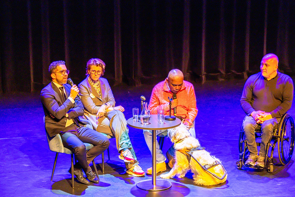 De paneldiscussie was relatief kort, maar de verschillende aanwezigen konden zeker voldoende hun verhaal vertellen. Onze wethouder Marc Wilson vertelde wat de gemeente inmiddels deed aan inclusie-beleid. Capelle behoort zeker bij de kopgroep maar ook hier valt nog wel eens wat te verbeteren. Zo is de ingang van Aquapelle voor rolstoelers aan de zijkant ook niet het visitekaartje voor deze groep Capellenaren, zo merkte Marc op. Edward Maalouf sprak over eigen ervaringen als gehandicapt topsporter; Sidney Tetelepta – blind en aanwezig met zijn trouwe metgezel, zijn hond - sloot hierop aan en pleitte voor meer toegang voor assistentiehonden in ziekenhuizen e.v. Dat blijkt vaak een probleem terwijl deze hond voor zijn of haar baas onmisbaar is als vaste begeleider. Ten slotte hield Annemarie van Sande een pleidooi om andere vormen van belemmeringen van toegang en dan met name taalachterstanden (lees- en schrijfvaardigheden; andere taal machtig; de steeds verdere ontoegankelijkheid van internet/digibeten) niet te vergeten.