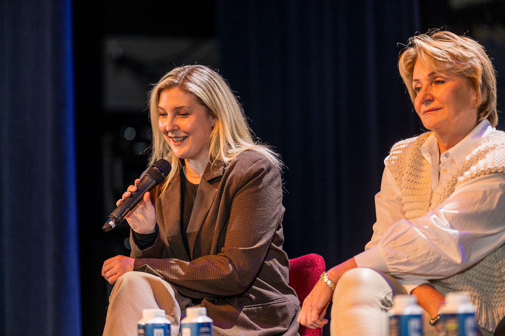 Vanuit diverse praktijkinvalshoeken werd gesproken over ervaringen, aanpak en hoe verder. Naast het onderwijs (VO - mevrouw Corine Klink, die vanuit haar ervaring als specialiste Passend Onderwijs), namen aan het tafelgesprek deel dr. Rob Pereira (sociaalpediater/kinderarts die zijn praktijkervaringen en zijn kennis van zaken deelde), mevrouw Nancy Dijksman (onderneemster en moeder van een zoon waarvan op latere leeftijd autisme werd gediagnosticeerd) en mevrouw Simone Luurs (van Galileo IT-services/GGZ begeleidster, veel te maken met jongeren met autisme). De bezoeker uit de zaal bleek zelf in het spectrum van autisme te vallen en vulde het gesprek goed aan. Dit alles onder de bezielende leiding van de vaste moderato Frènk van der Linden. Natuurlijk ook een act van - dit keer - Femke Vernij. Haar act ging over een ADHD-er, wat zij schitterend uitbeeldde; zij ging haarfijn in op het dagelijks leven van een ADH-er.